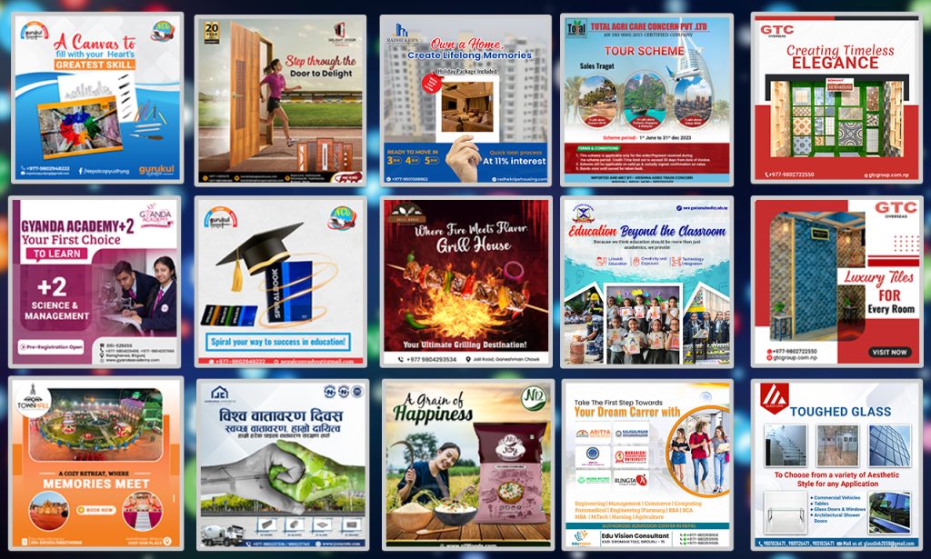 Engaging your audience and promoting your business depend on having effective marketing materials. We create a variety of visually appealing products that complement the message of your company, such as business cards, flyers, posters, and brochures. ( graphic design services), which range from powerful brochures to (standing banner designs), are designed to make your advertising stand out.